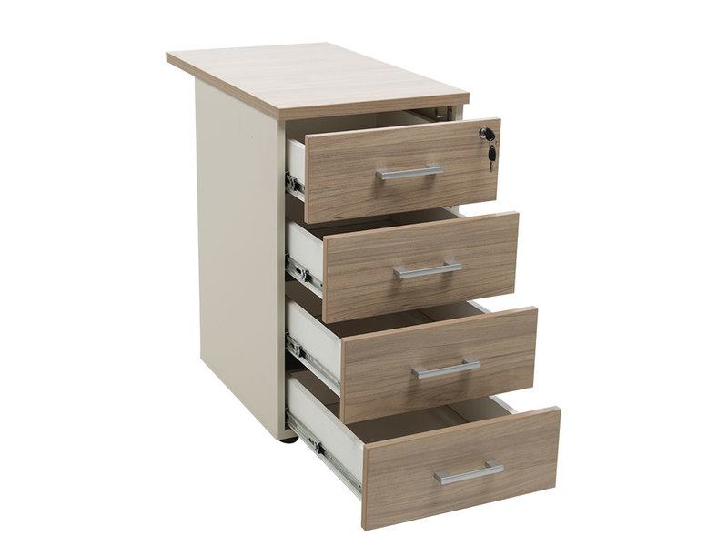 - тумба снабжена центральным замком и оснащена пластмассовым лотком для канцелярских принадлежностей в верхнем ящике